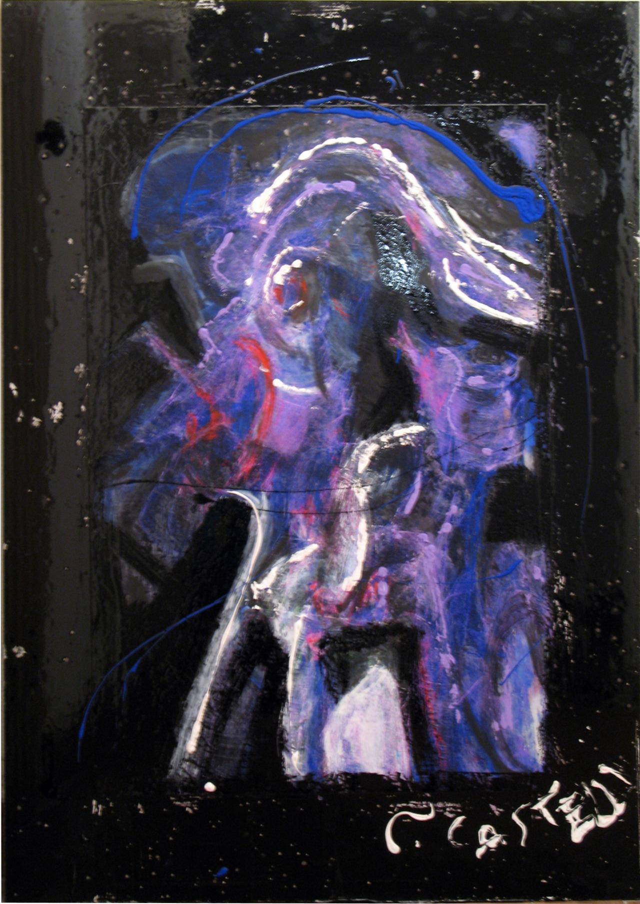 Alcuni vecchi dipinti, a tecnica mista, nei quali ho dipinto pennellate materiche su una base stampata su carta fotografica creata digitalmente. L' arte digitale , infinitamente riproducibile, diventa unica.